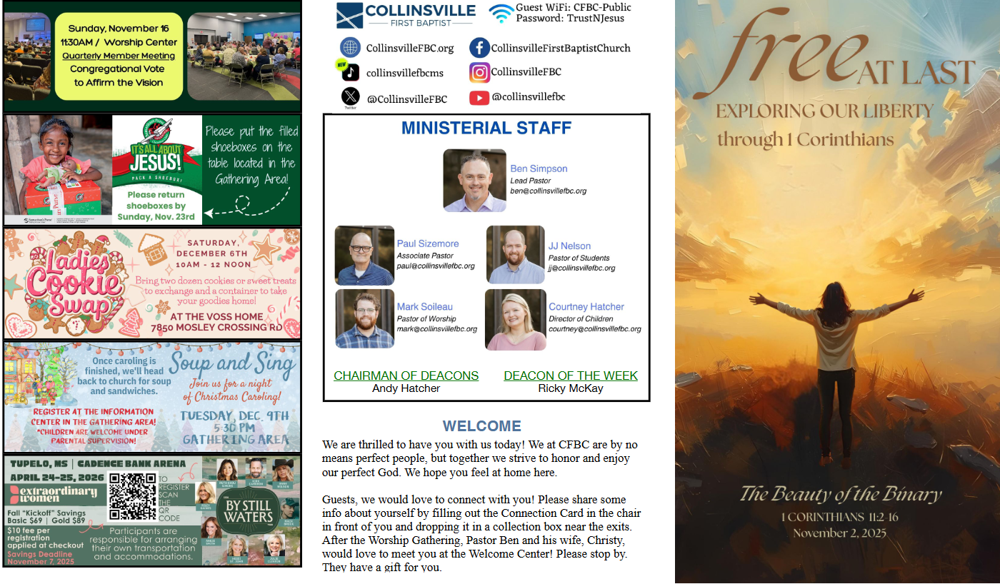 Worship Bulletin Gathering Hearts to Worship and Souls to Grow Deeper in Faith. Worship. Connect. Serve. Join us each week to worship together, build lasting connections, and grow in faith as we serve God’s greater purpose. Download PDF